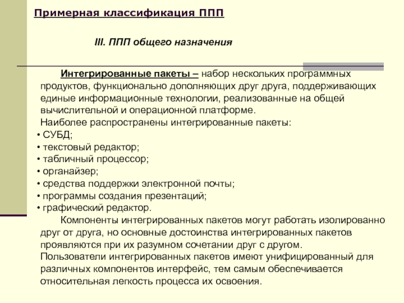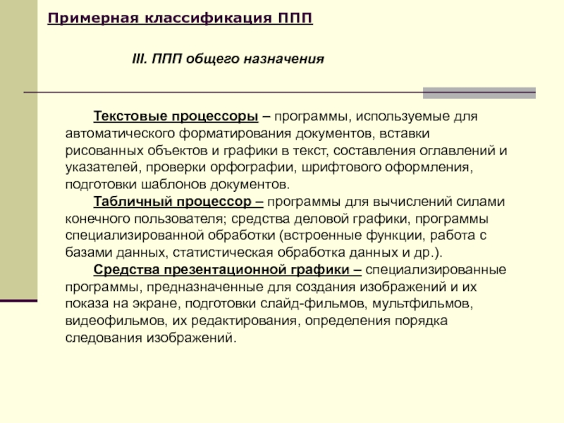 1. Общего назначения (текстовые редакторы, СУБД, графические системы, интегрированные системы);