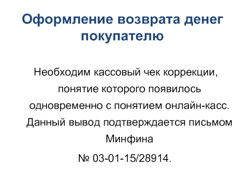 – возврата за оплаченные ранее наличными деньгами и возвращенные товары,