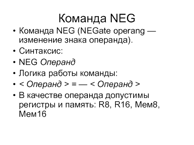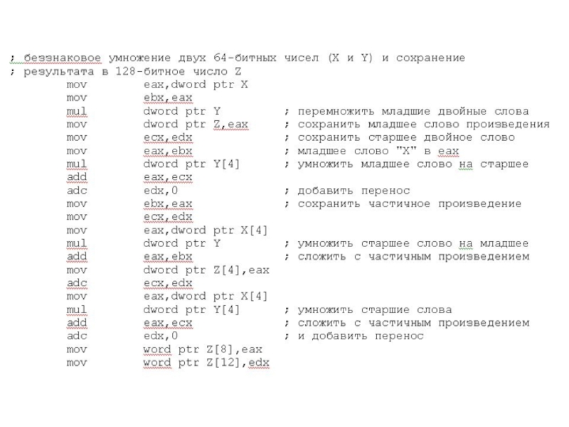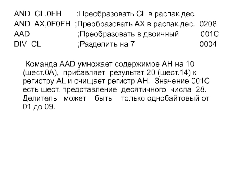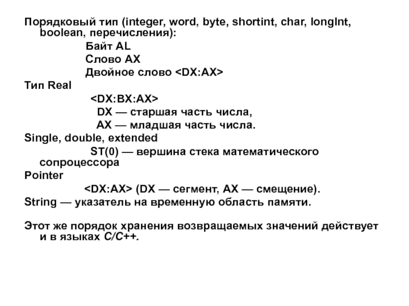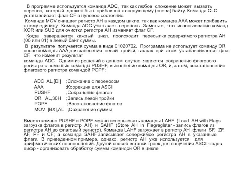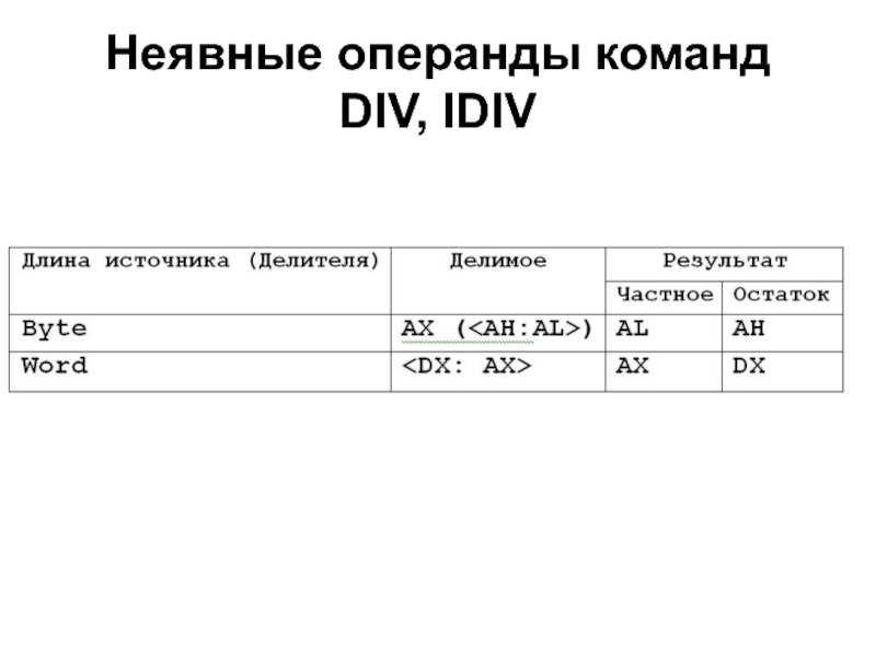 Слайд 10регистр АХ служит для временного хранения данных (регистр аккумулятор); часто используется