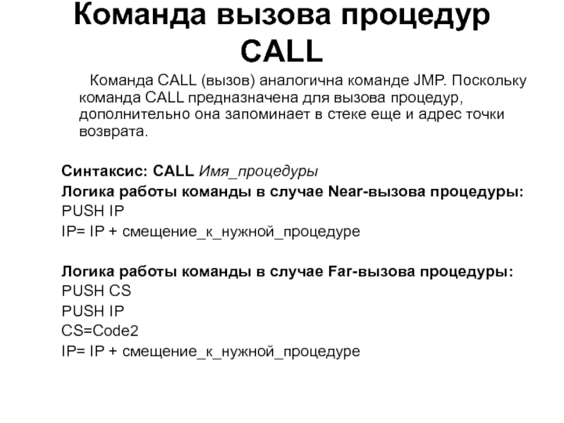 IP содержит 100H (первый байт модуля) в результате команды JMP PSP:100H.