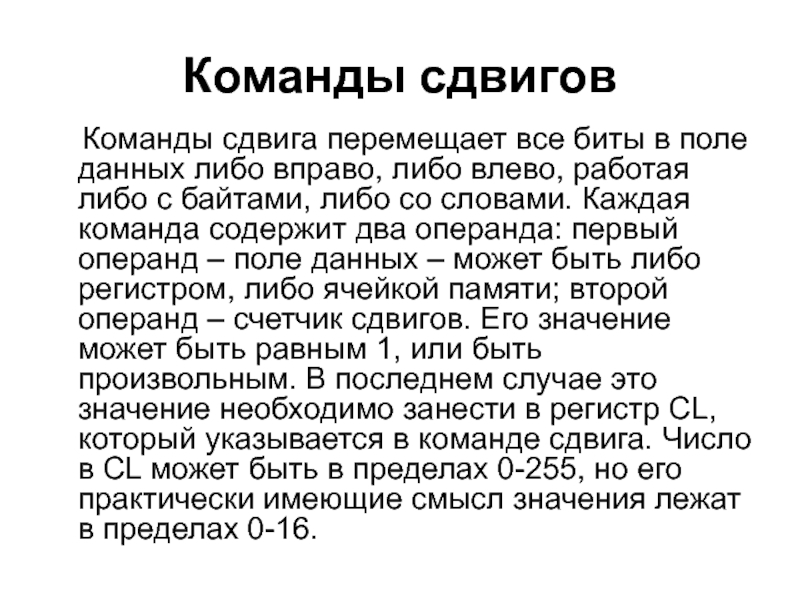 Непосредственная адресация применяется, когда операнд, длинной в байт