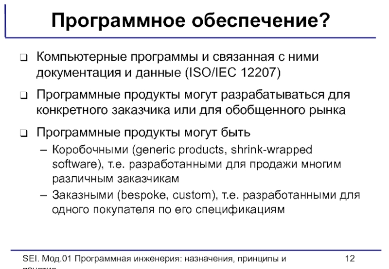 Коробочными (generic products, shrink-wrapped software), т.е. разработанными для продажи многим различным заказчикам