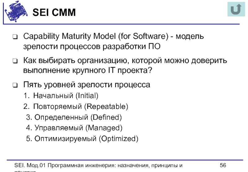 Capability Maturity Model (for Software) - модель зрелости процессов разработки ПО