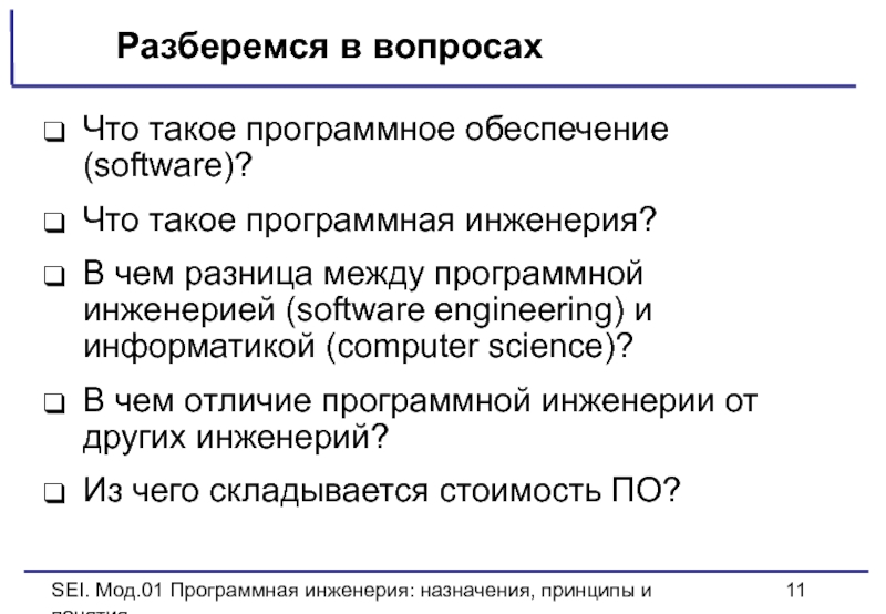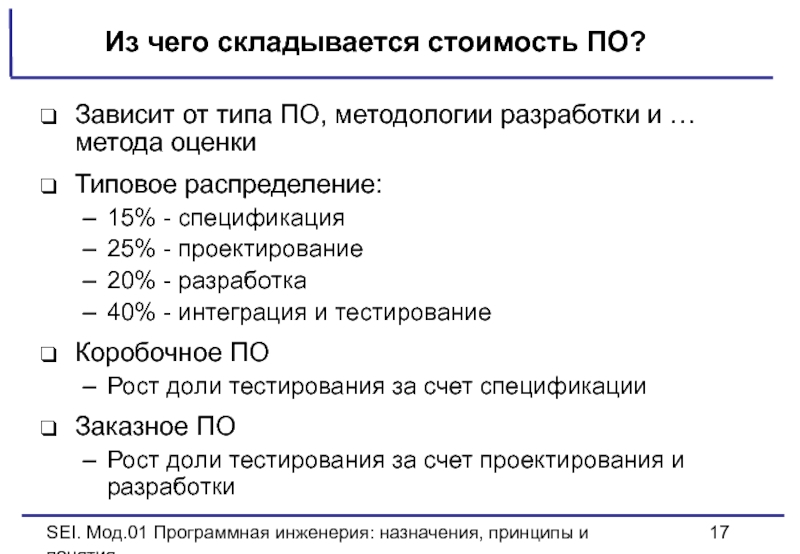 та форма инженерии, которая применяет принципы информатики (computer science) и математики для рентабельного решения проблем ПО. [CMU/SEI-90-TR-003]