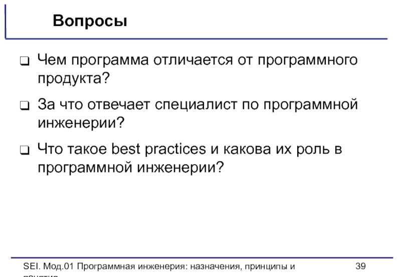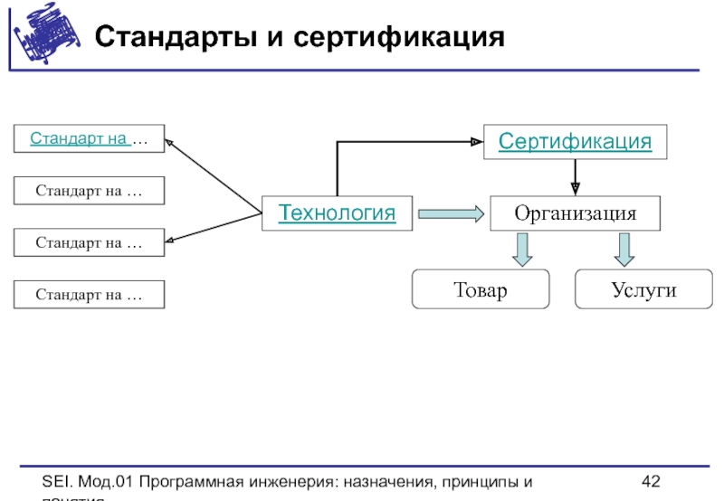 применение систематического, дисциплинированного, измеряемого подхода к разработке, использованию и сопровождению ПО [IEEE 1990].