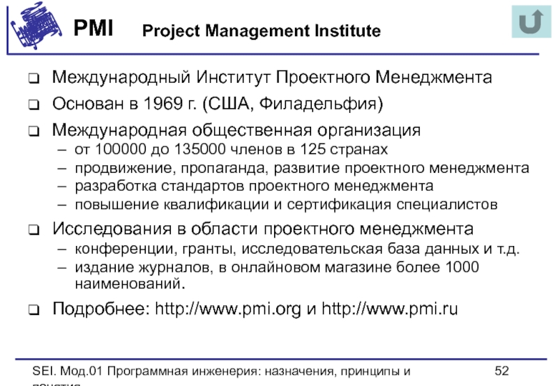 Подробнее: http://www.pmi.org и http://www.pmi.ru