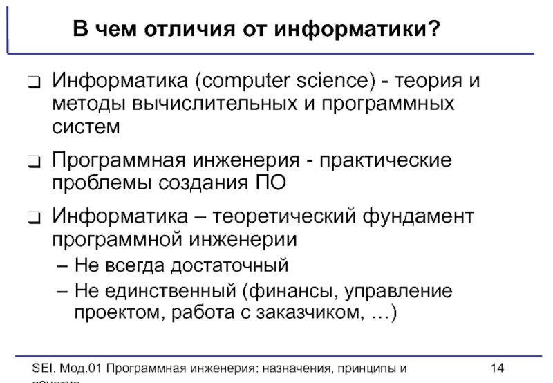 В чем разница между программной инженерией (software engineering) и информатикой (computer science)?