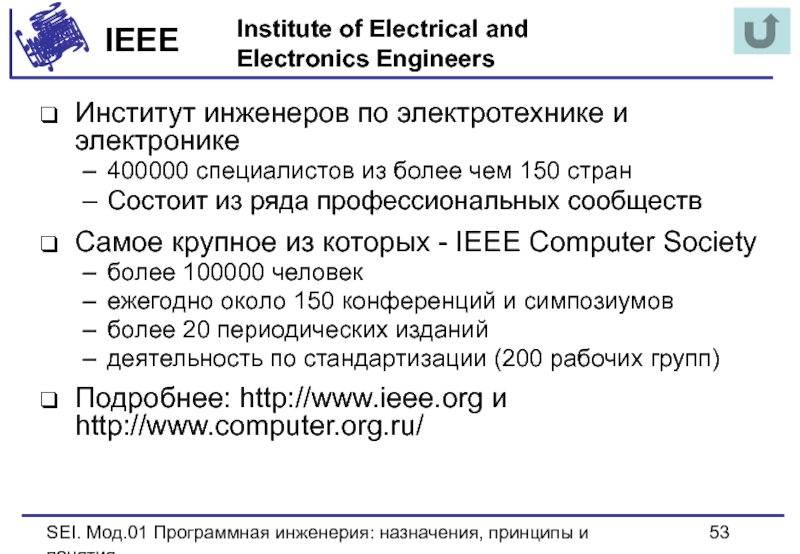 Подробнее: http://www.ieee.org и http://www.computer.org.ru/