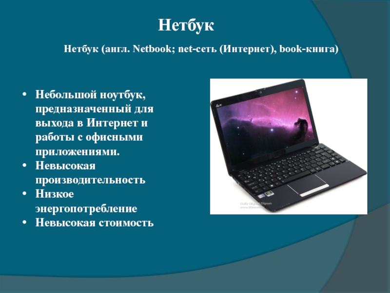 Нетбук (англ. Netbook; net-сеть (Интернет), book-книга)