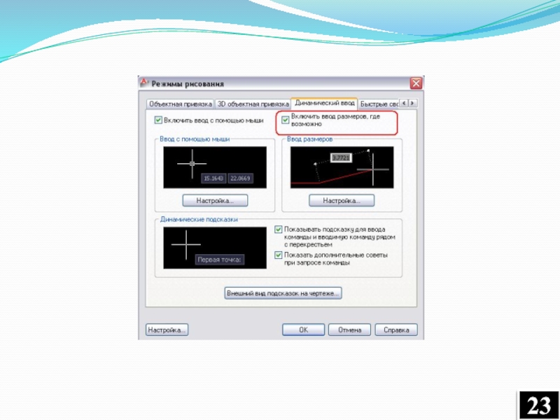 окружности определяется значением радиуса или диаметра. Для этих объектов существует также возможность нанесения маркеров центра и центровых линий.