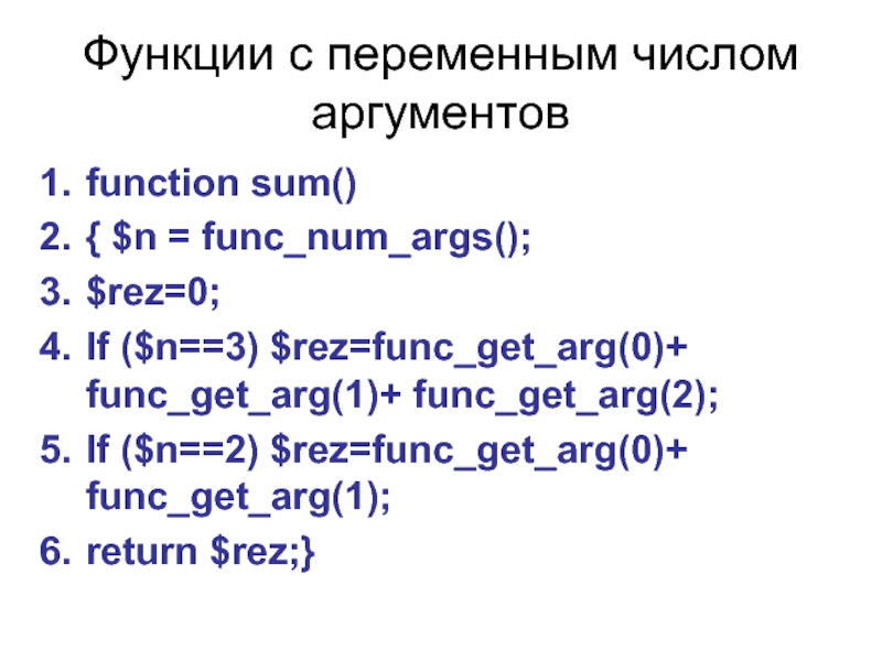 В PHP4 можно создавать функции с переменным числом аргументов.