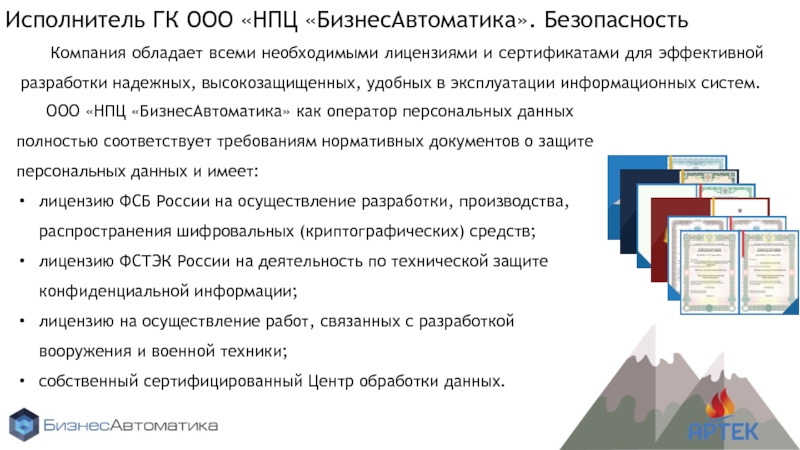 ООО «НПЦ «БизнесАвтоматика» как оператор персональных данных полностью соответствует требованиям нормативных документов о защите персональных данных и имеет: