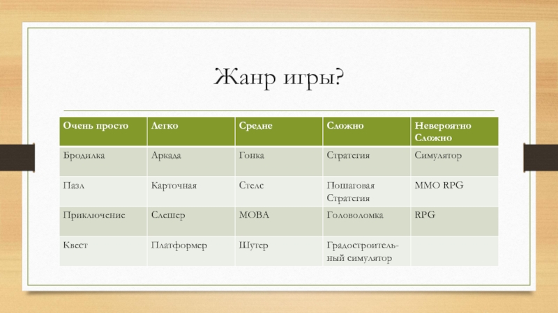 Слайд 2Жанр игры?