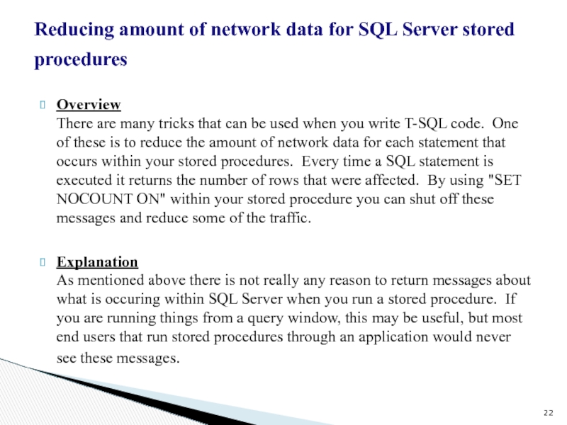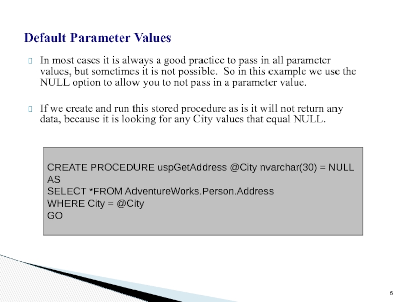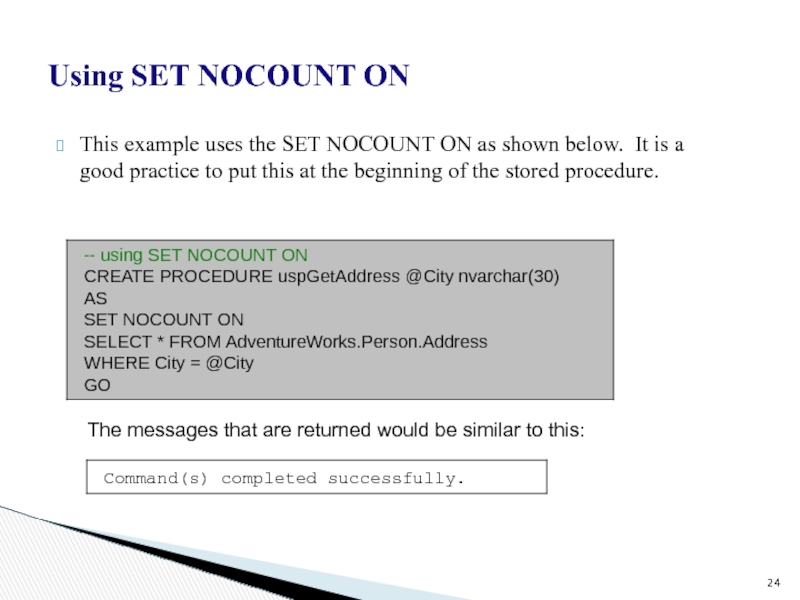 Now the next time that the stored procedure is called by an end user it will use this new logic.