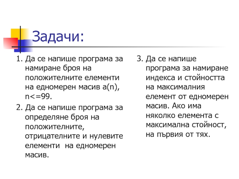 3. Да се напише програма за намиране индекса и стойността на максималния елемент от едномерен масив. Ако има няколко елемента с максимална стойност, на първия от тях.