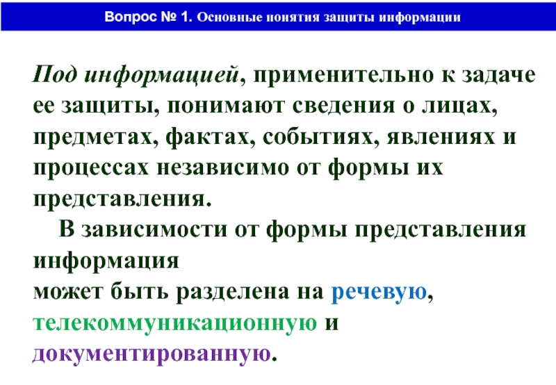 Слайд 8Вопрос № 1. Основные понятия защиты информации