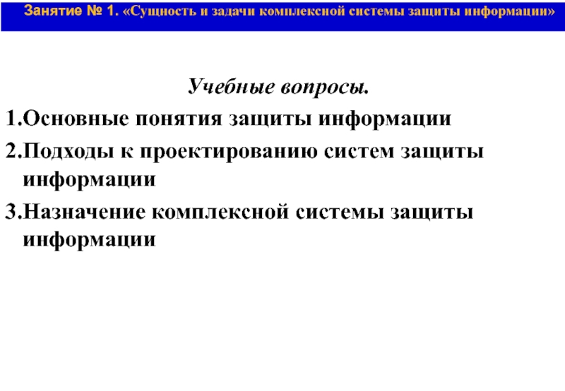 Слайд 4 Занятие № 1. «Сущность и задачи комплексной системы защиты информации»