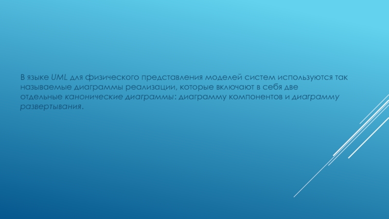 Слайд 39В языке UML для физического представления моделей систем используются так называемые диаграммы реализации,
