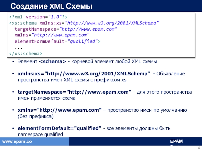 xmlns="http://www.epam.com" - пространство имен по умолчанию