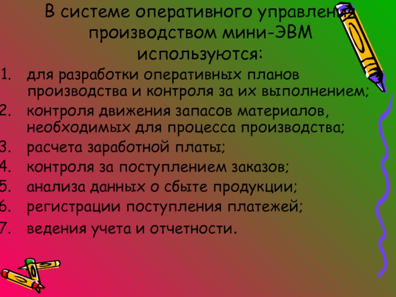 Слайд 11В системе оперативного управления производством мини-ЭВМ