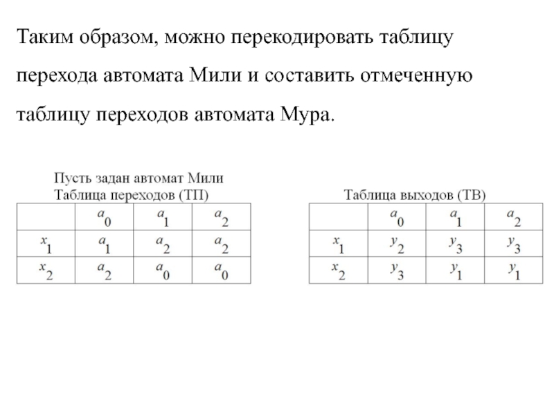 Слайд 41Таким образом, можно перекодировать таблицу перехода автомата Мили и составить отмеченную
