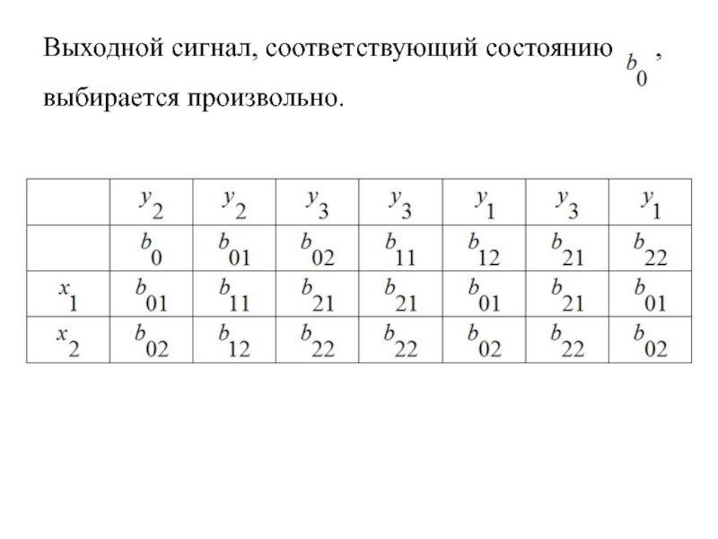 Слайд 47Выходной сигнал, соответствующий состоянию , выбирается произвольно.