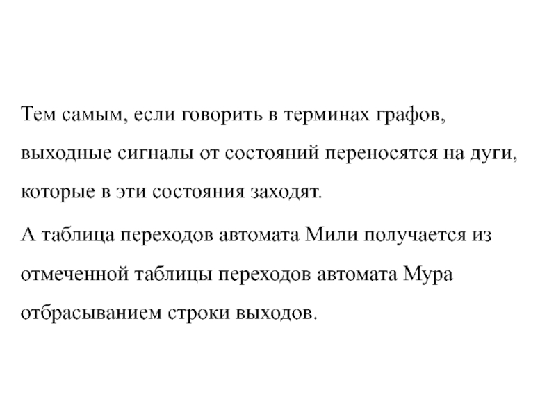 Тем самым, если говорить в терминах графов, выходные сигналы от состояний