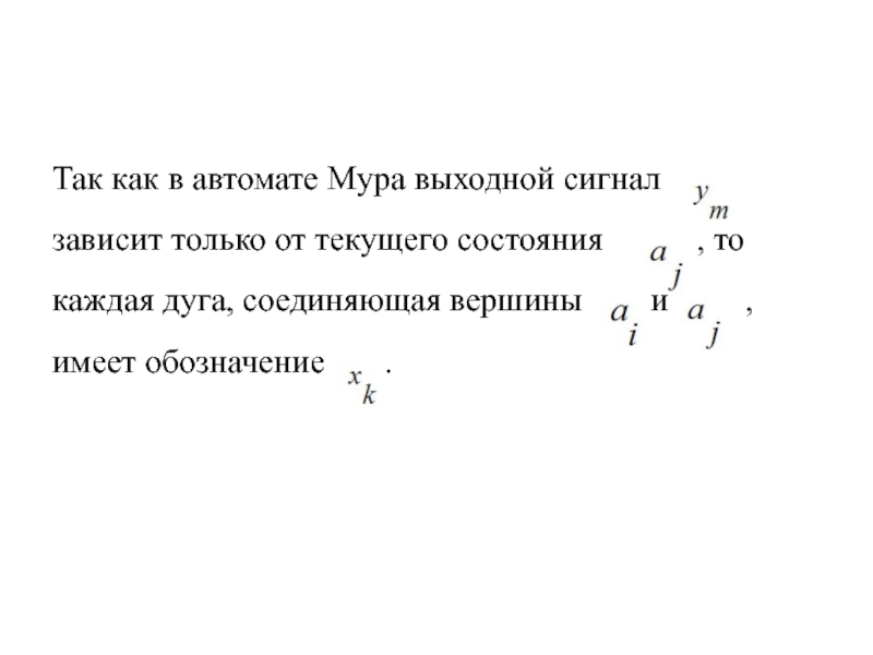 Слайд 45Так как в автомате Мура произвольному состоянию соответствует некоторый выходной сигнал,