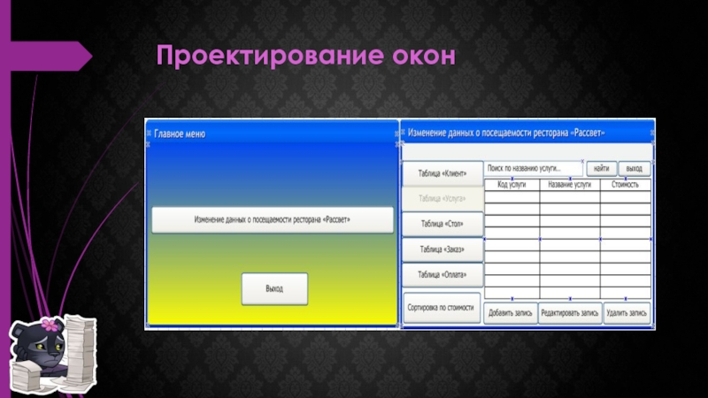 Разработка интерфейса пользователя в соответствии с требованиями ТЗ и ТП. Кодирование модулей программной системы с целью создания прототипа.
