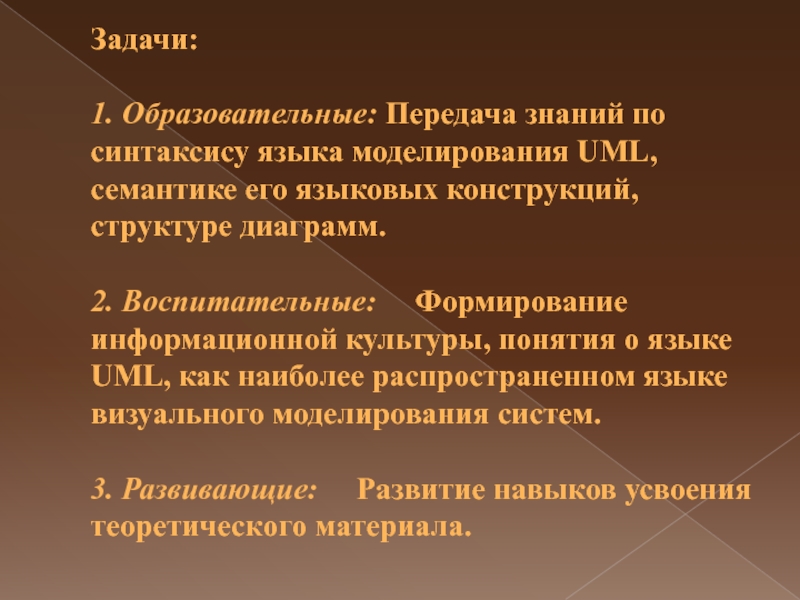 Снабдить исходные понятия языка UML возможностью расширения и специализации для более точного представления моделей систем в конкретной предметной области.