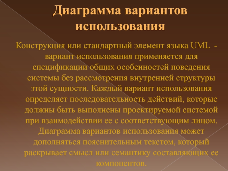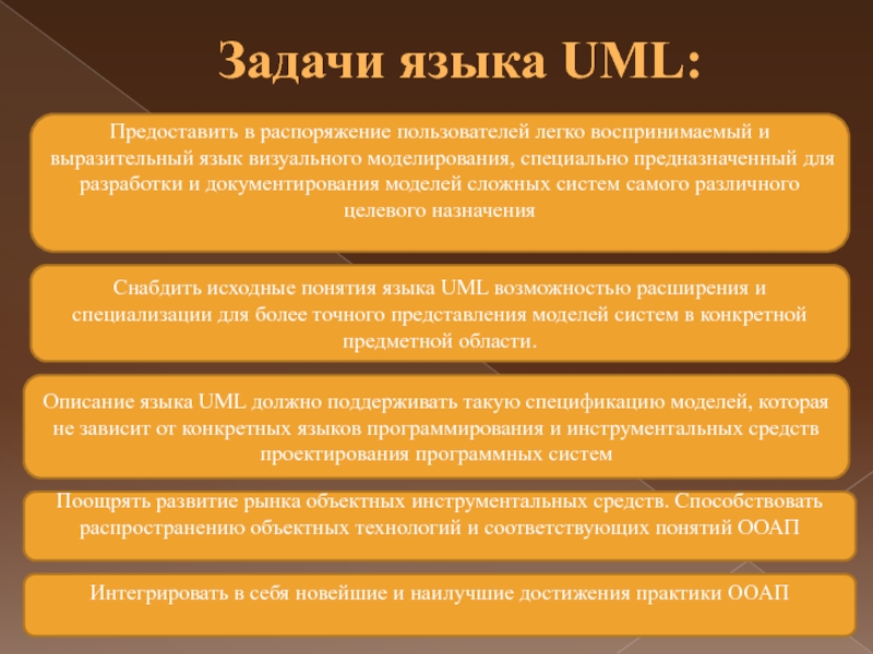 Описание языка UML должно поддерживать такую спецификацию моделей, которая не зависит от конкретных языков программирования и инструментальных средств проектирования программных систем