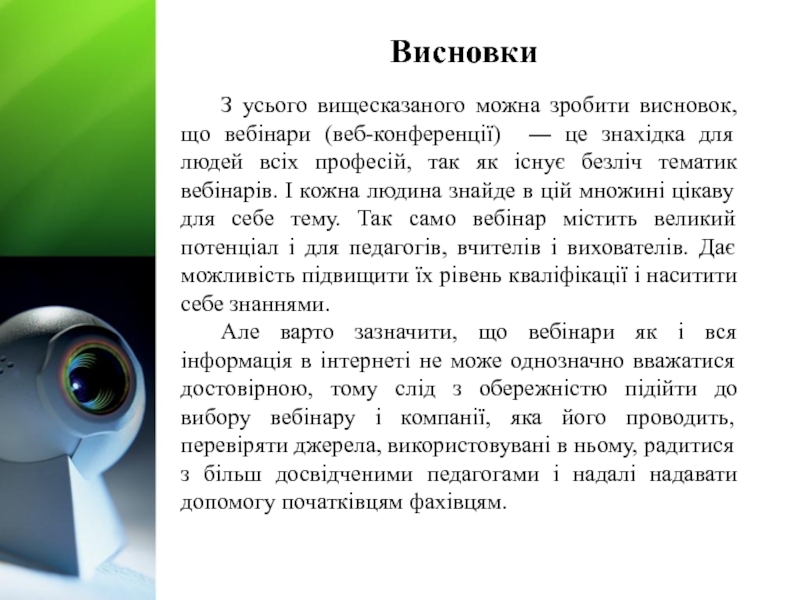Слайд 12З усього вищесказаного можна зробити висновок, що вебінари (веб-конференції) — це