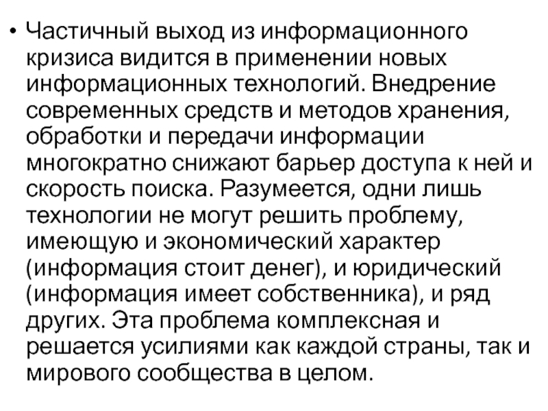 Частичный выход из информационного кризиса видится в применении новых информационных технологий.