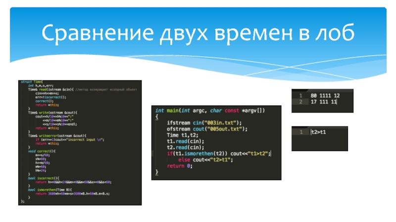 Слайд 5Сравнение двух времен через перегрузку оператора