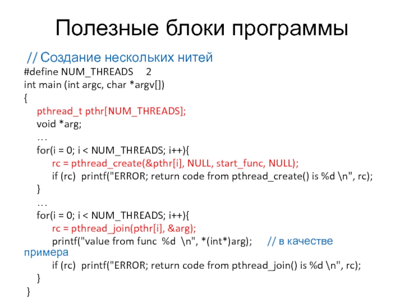 1) rc = pthread_create(&pthr, NULL, start_func, NULL); // создание нити упрощенный вызов