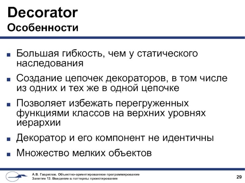 Позволяет избежать перегруженных функциями классов на верхних уровнях иерархии