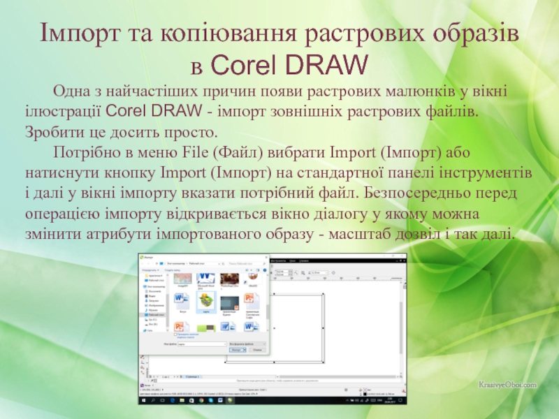 Слайд 18Одна з найчастіших причин появи растрових малюнків у вікні ілюстрації Corel