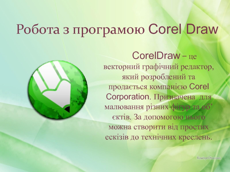 який розроблений та продається компанією Corel Corporation. Призначена для малювання різних фігур та об’єктів. За допомогою нього можна створити від простих ескізів до технічних креслень.
