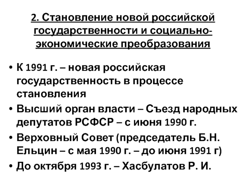2. Становление новой российской государственности и социально-экономические преобразования