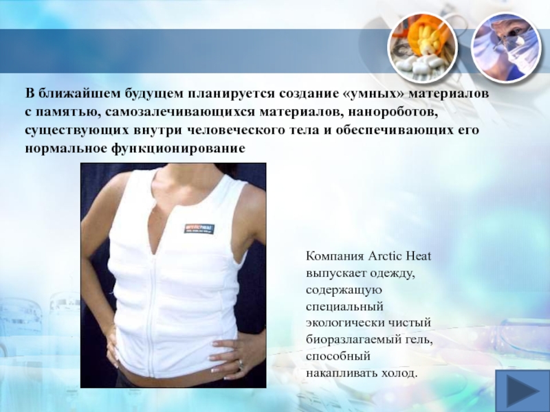 Компания Arctic Heat выпускает одежду, содержащую специальный экологически чистый биоразлагаемый гель, способный накапливать холод.