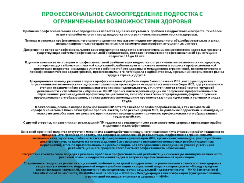 Слайд 3ПРОФЕССИОНАЛЬНОЕ САМООПРЕДЕЛЕНИЕ ПОДРОСТКА С ОГРАНИЧЕННЫМИ ВОЗМОЖНОСТЯМИ ЗДОРОВЬЯ