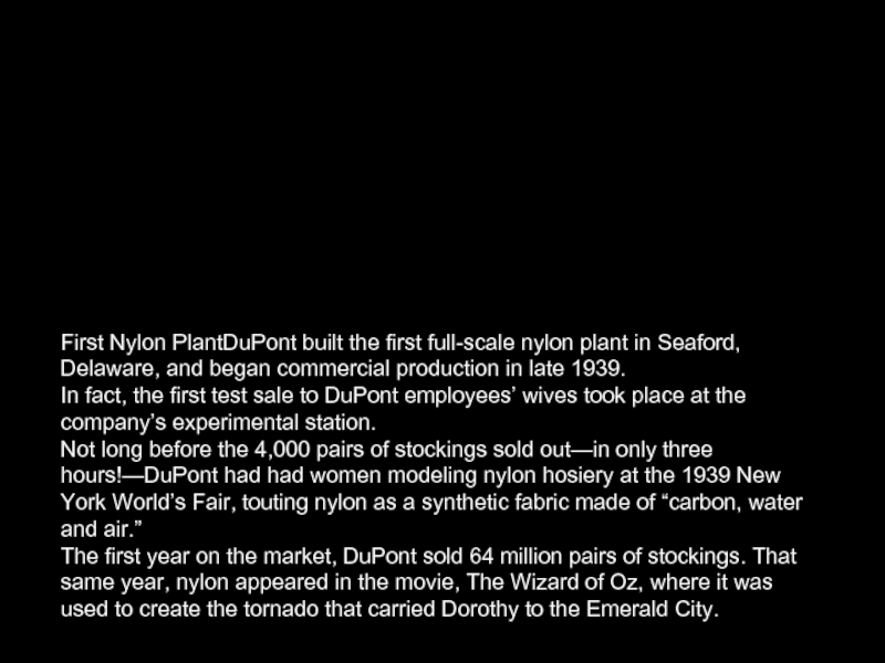 Слайд 3First Nylon PlantDuPont built the first full-scale nylon plant in Seaford,