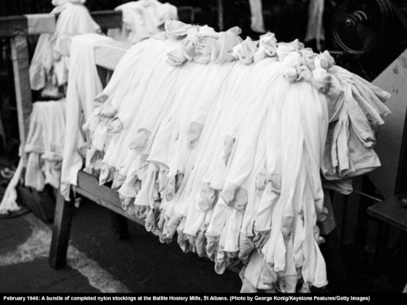 Слайд 31February 1946: A bundle of completed nylon stockings at the Ballite
