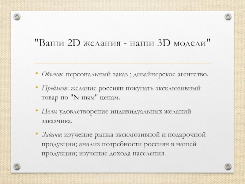 Слайд 2"Ваши 2D желания - наши 3D модели"