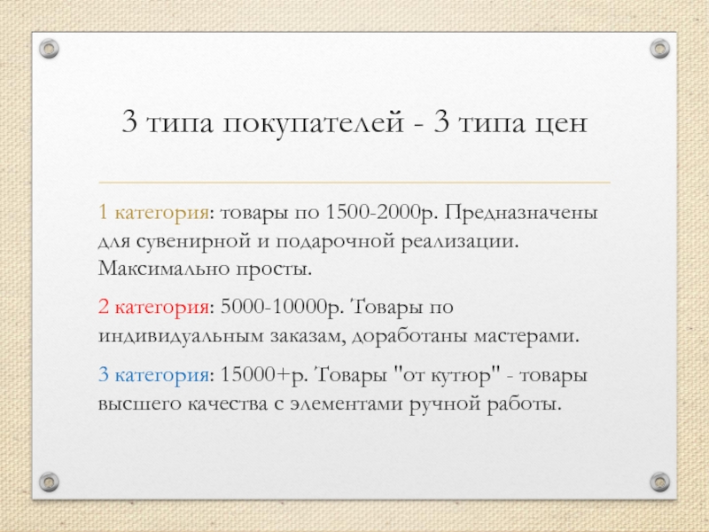 Слайд 43 типа покупателей - 3 типа цен
