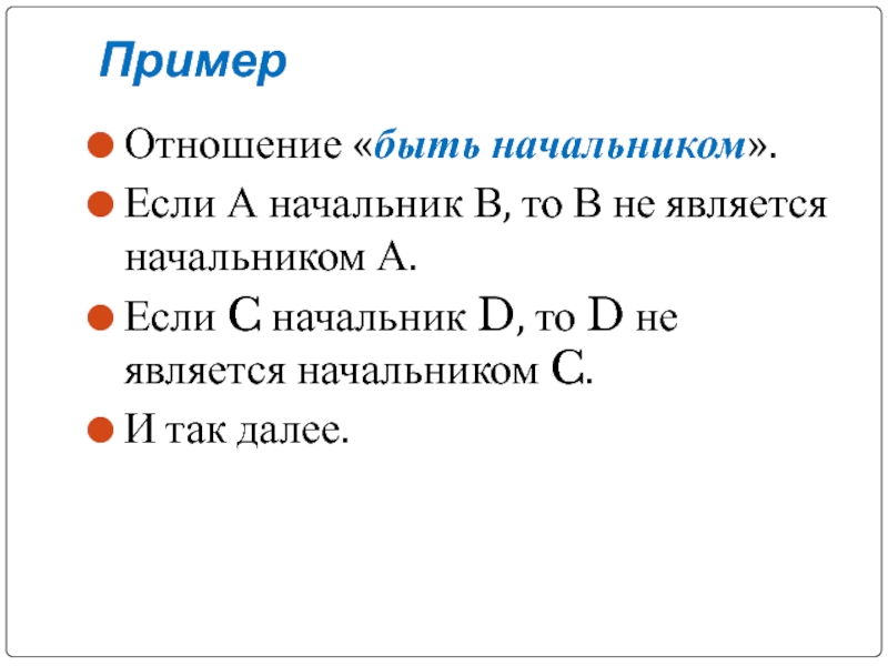 Отношение порядка R – отношение строгого порядка, если оно антирефлексивно,