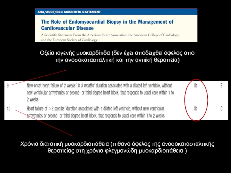 Слайд 22Οξεία ιογενής μυοκαρδίτιδα (δεν έχει αποδειχθεί όφελος απο την ανοσοκατασταλτική και