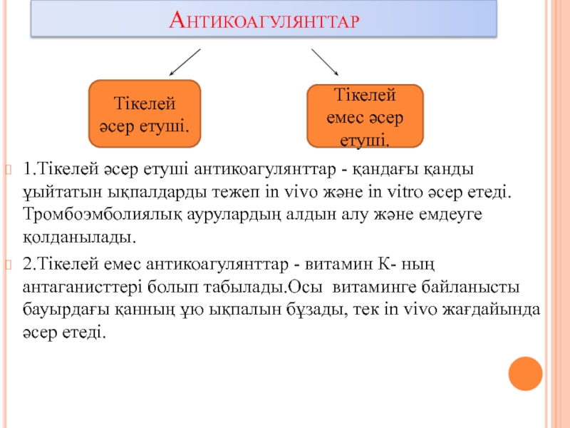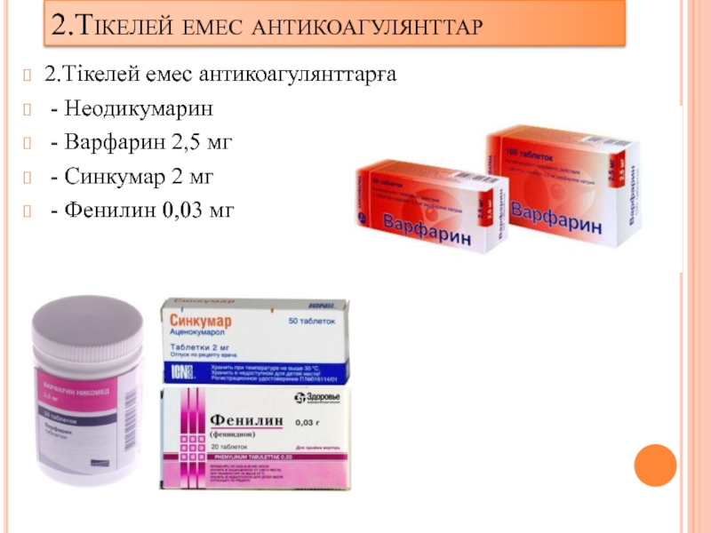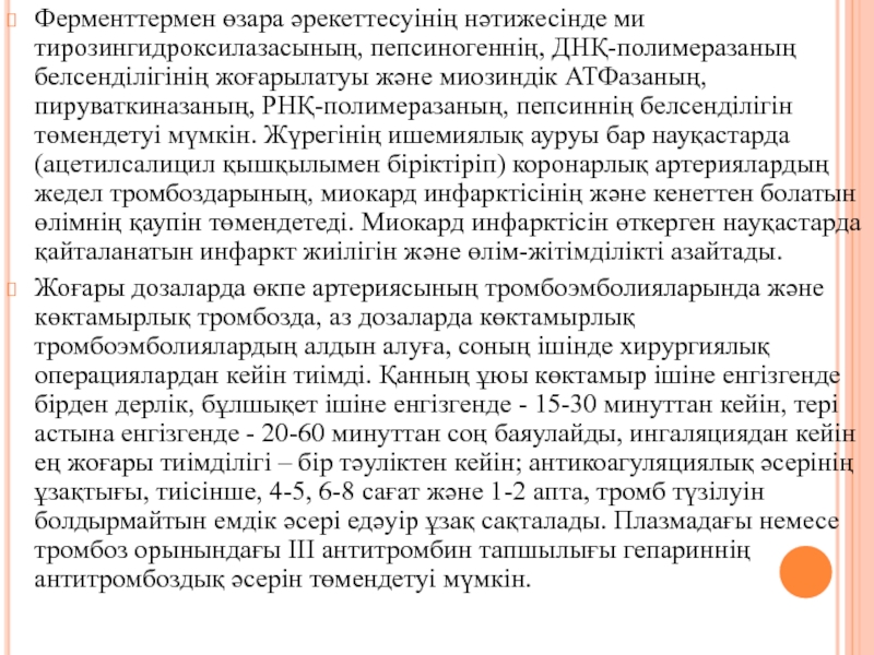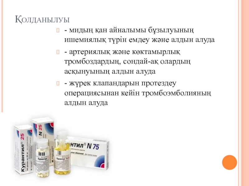 1.Тромбоздың алдын алу және емдеу үшін қолданылатын