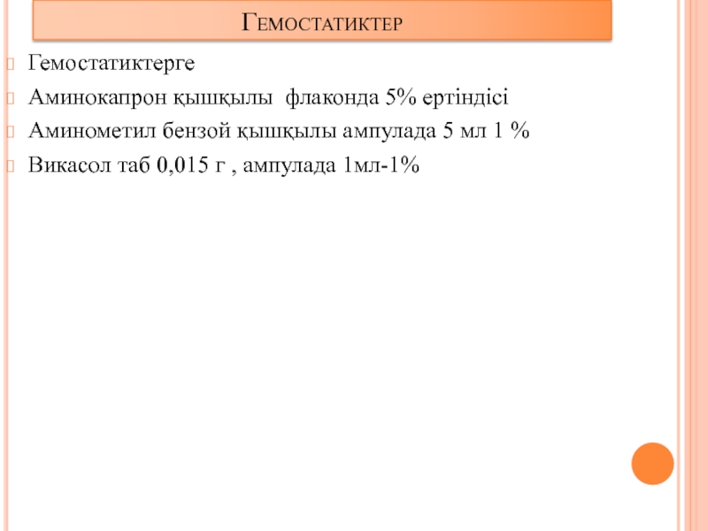 Геморрагиялық синдром кезінде қолданылатын дәрілер.