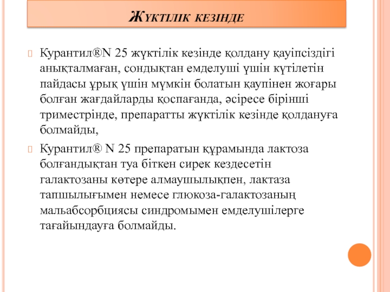 Курантил® N 25 тромбоциттердің агрегациясын тежейтін әсер көрсетеді және